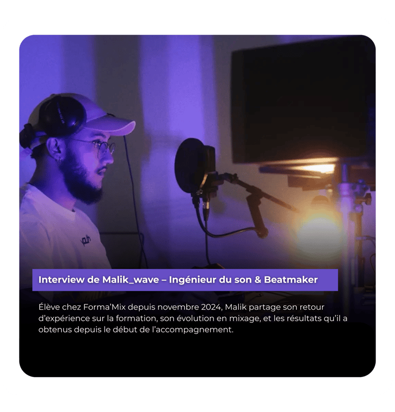 Découvrez les témoignages vidéo de nos élèves : ils partagent leur parcours, leur évolution en mixage et les résultats concrets obtenus grâce à l’accompagnement de Forma’Mix. Des retours authentiques d’ingénieurs du son, beatmakers et artistes formés depuis plusieurs mois.